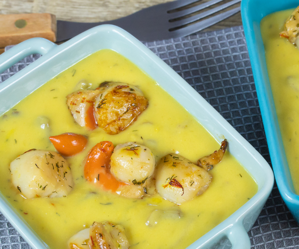 - Faire revenir dans un peu de beurre les coquilles pendant 5 à 7 minutes, les faire dorer.