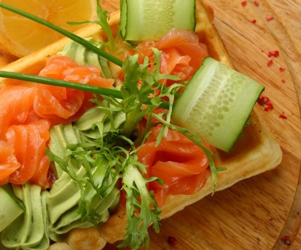 Plat : Gaufre à la Mayonnaise à la Truffe Noire et saumon fumé