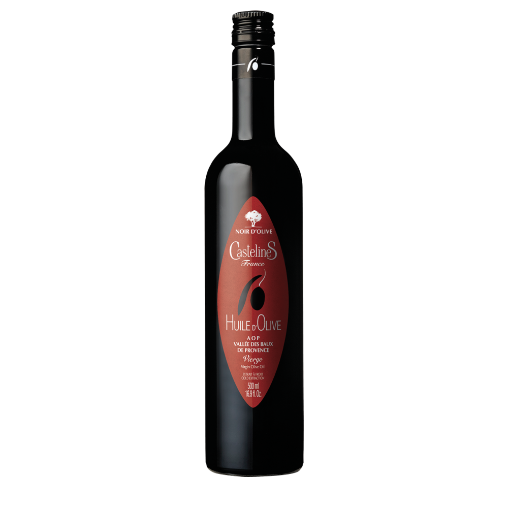 Le moulin CastelaS revisite les pratiques traditionnelles des anciens de la Vallée des Baux de Provence pour créer Noir d'Olive. Cette huile d'olive provient de 4 variétés d'olives issues de nos vergers cueillies à pleine maturité et stockées en palox à l'abri de l'oxygène. Débute alors le travail délicat d'une légére fermentation associé à un savoir-faire afin de retrouver le goût de l'olive noire confite des moulins à meule de nos ancêtres. Tout l'art consiste à obtenir cette typicité sans pour autant en subir les défauts. Ce millésime va ravir les amateurs de fruité noir. Il présente tous les attributs positifs de la palette aromatique AOP Vallée des Baux : nez «chômé», tapenade noire, olive confite, cacao, vanille, fruits confits pour finir sur des arômes de truffe et une grande douceur en bouche. Noir d'Olive s'utilise à froid dans la salade, pour monter une mayonnaise ou un aïoli et en filet sur les poissons, les champignons et la purée de pommes de terre. Le domaine Castelas produit de l'olive sur 45 hectares en Appelation d'Origine Protégée de la Vallée des Baux de Provence et 65 hectares en Plaine de Crau. Les olives de la variété des Alpilles, tupiques de l'AOP, sont pressées au moulin situé au pied du Château des Baux et donnent un caractère inégal à cette collection d'huiles d'olive de grande puissance, régulièrement primées au Concours Général Agricole de Paris.