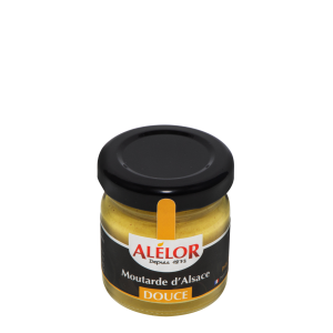 Les mignonnettes de 35g vous permettent de découvrir notre moutarde ! Ce format très pratique est idéal pour constituer un assortimement pour les pierrades ou les planchas, il s'emmène facilement pour un pique-nique ou se glisse dans un panier garni pour une délicate note gourmande. La moutarde douce d’Alsace est produite par Alélor, seule moutarderie d’Alsace, depuis 1873. Elle s’apprécie tant pour sa douceur, que pour sa texture fine et onctueuse. C’est l’accompagnement incontournable de la choucroute d’Alsace. Mariez-la à vos recettes quotidiennes pour une cuisine traditionnelle ou proposez la à vos convives pour relever différents plats à base de viande ou de charcuterie. La moutarde douce, aussi appelée condiment, parfume vos viandes, poissons et légumes. Elle permet aux palais les plus sensibles de goûter enfin aux plaisirs de la moutarde sans en affronter toute la puissance.