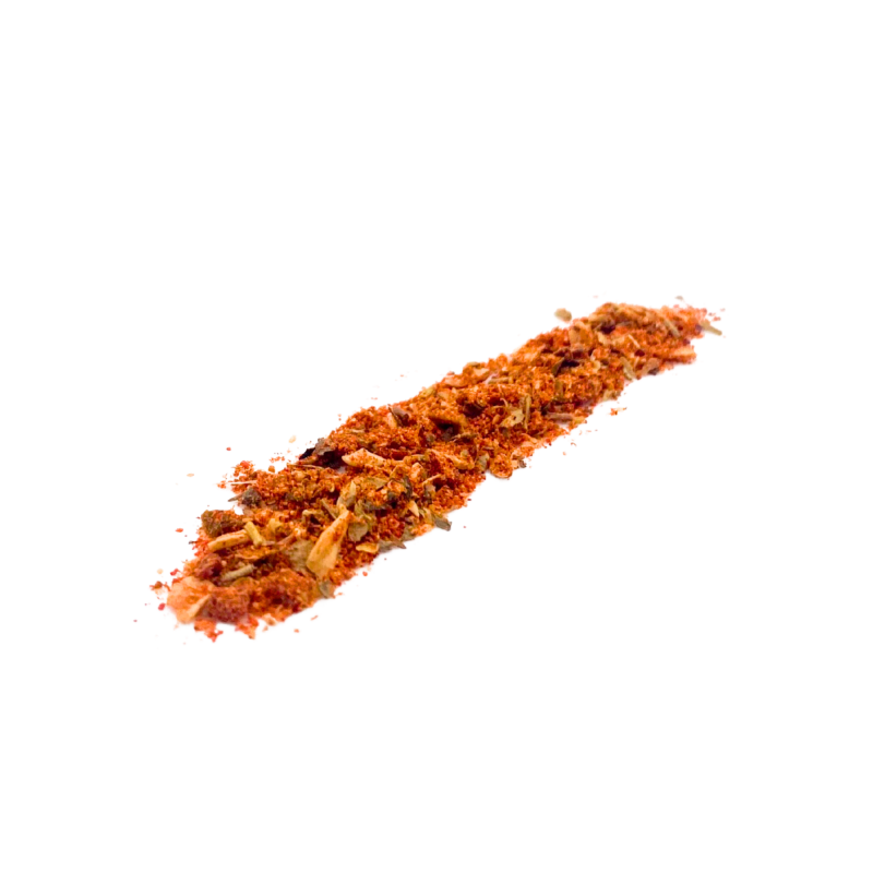 Paprika, oignon, ail, piment doux fumé, origan, romarin, gingembre, poivron rouge, basilic, poivron vert, cumin, poivre noir