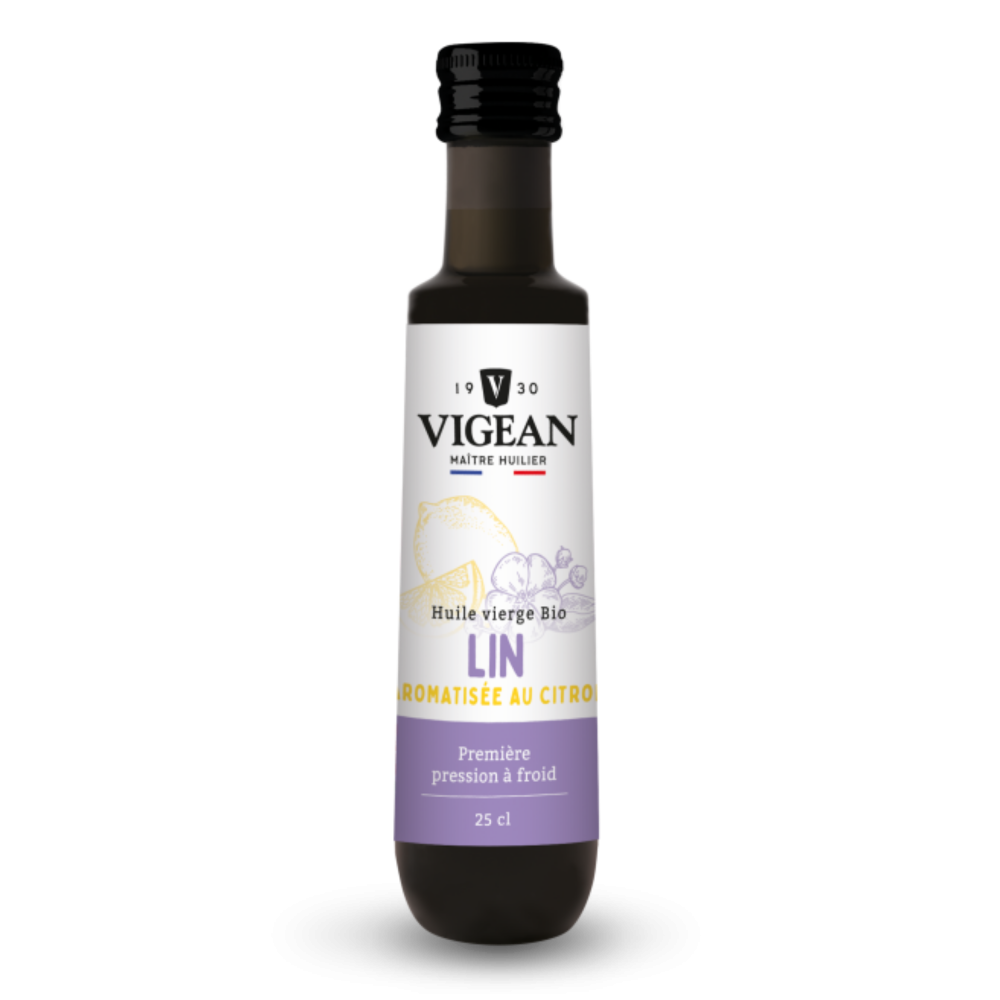 L'huile de lin aromatisée au citron a une saveur fraîche et citronnée qui ajoute une touche d'acidité et de fraîcheur à vos plats. Elle peut être utilisée pour garnir des plats tels que des légumes cuits, du poulet, du poisson ou des fruits de mer.