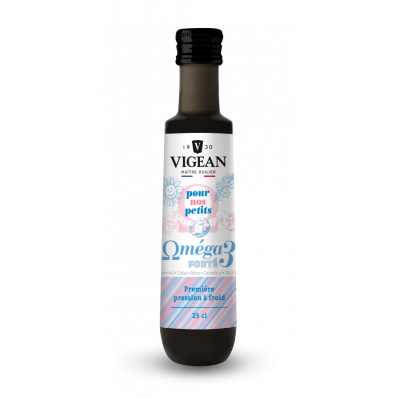 L’huile « Oméga 3 Forté pour nos petits » est 100 % végétale.