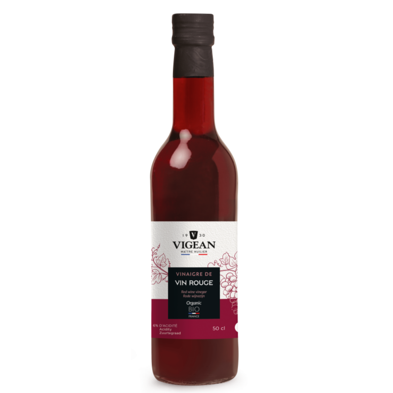 Vinaigre de vin rouge issu de l’agriculture biologique française (6% d’acidité).