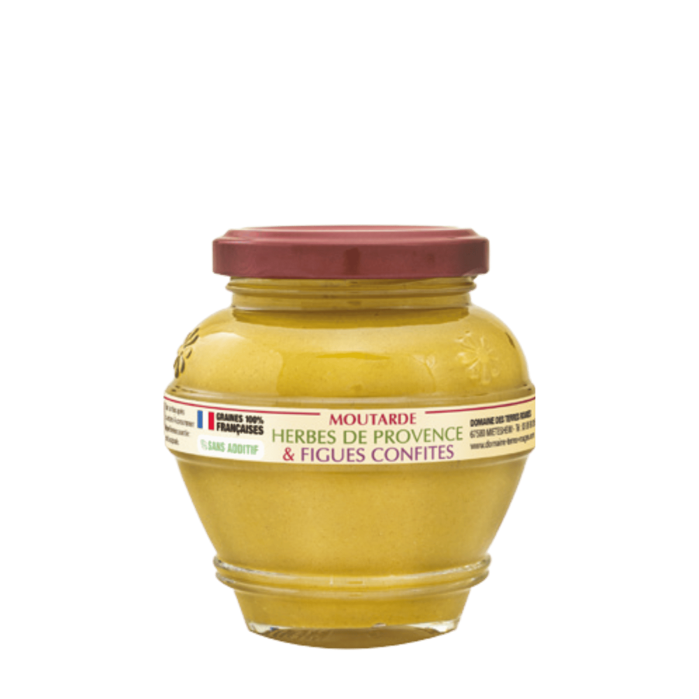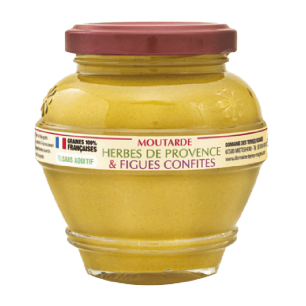 La Moutarde aux Herbes de Provence et aux Figues Confites est un condiment solaire qui marie le caractère aromatique des herbes du Sud à la douceur confite de la figue. Ses notes ensoleillées et gourmandes en font un compagnon idéal pour les tablées estivales comme pour les repas du quotidien. Une moutarde originale qui séduit par sa rondeur et son parfum de garrigue.